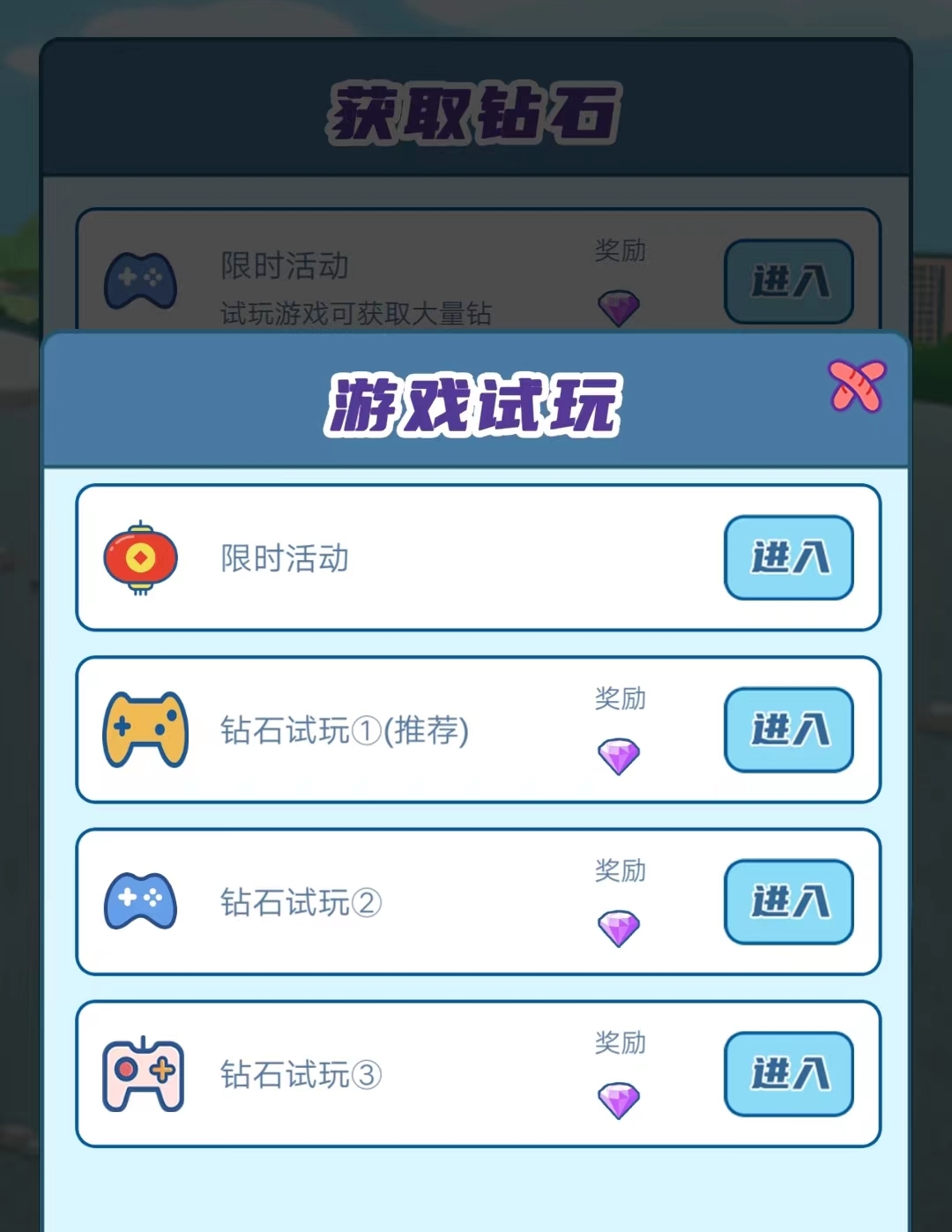这里试玩入口每获得100钻石奖励0.1元(无上限)